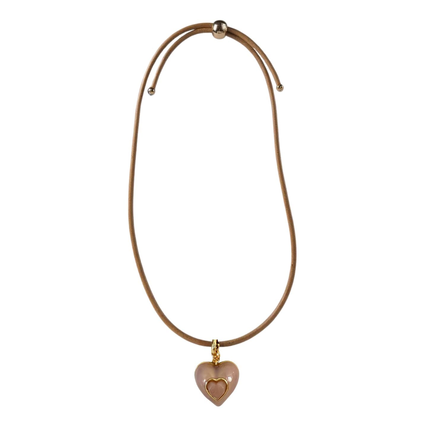 26" adjustable leather cord necklace with heart shaped glass stone pendant.