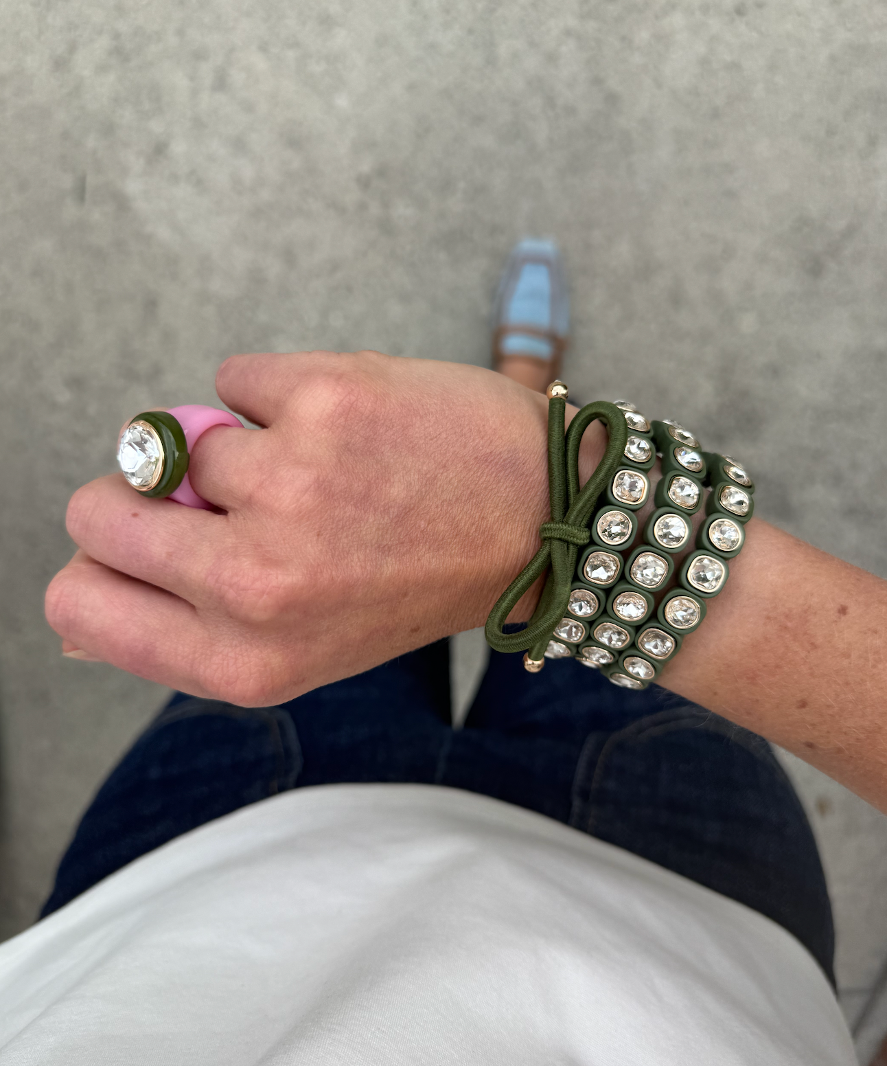 nylon elastic hair tie with 14K brass plated detail